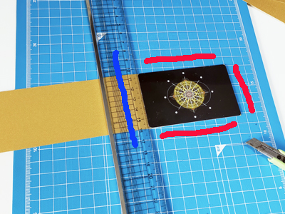 「 免許証/カードサイズ 」(縦57mm × 横85mm)にカットしていきます。